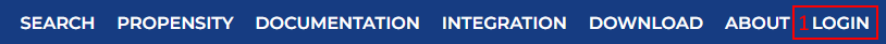 To access the API integration, you will first create your own account by clicking on the Login tab at the top of the page ([1]):