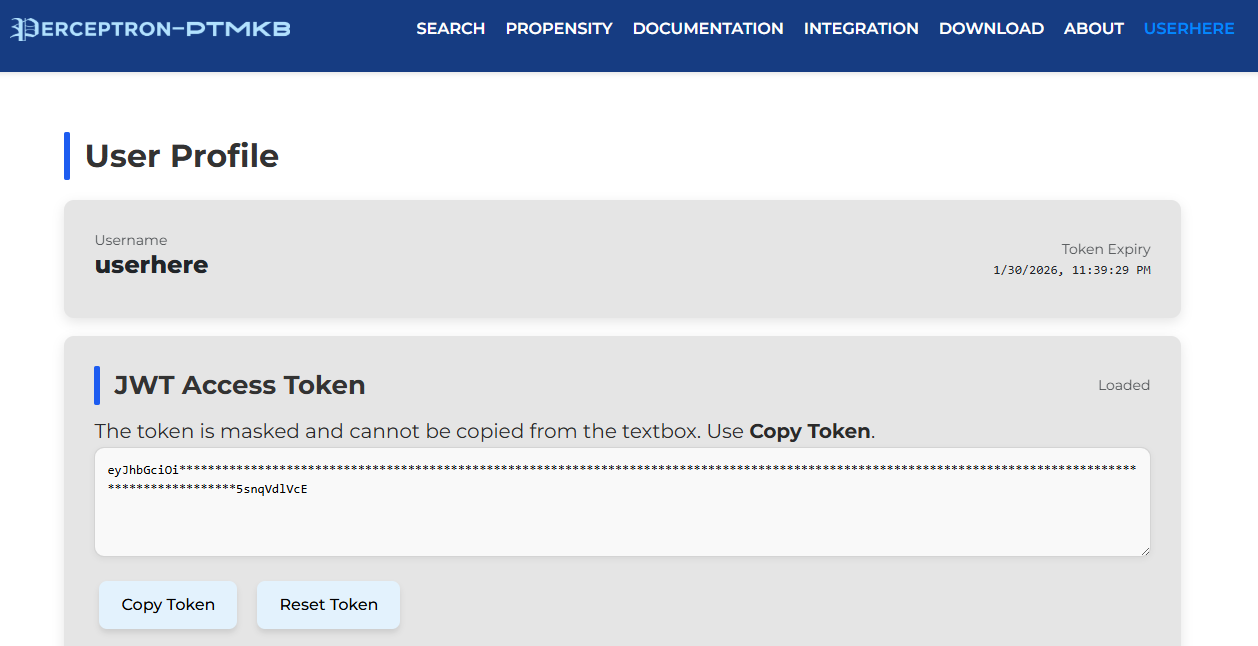 The token is hidden for safety reasons. To acquire the full token, click the "Copy Token" to copy the token to your clipboard. Please note that the provided token is valid only for 5 days from the time of its generation.. When a token expires, you will be prompted to reset a token, which you can do by clicking on the "Reset Token" button.