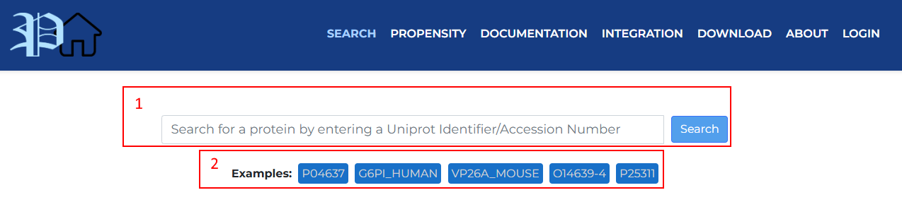 This page is where you can search for proteins using a UniProt-based Protein Identifier or a UniProt-based Accession Number. Upon accessing the page, you will be presented with this screen: